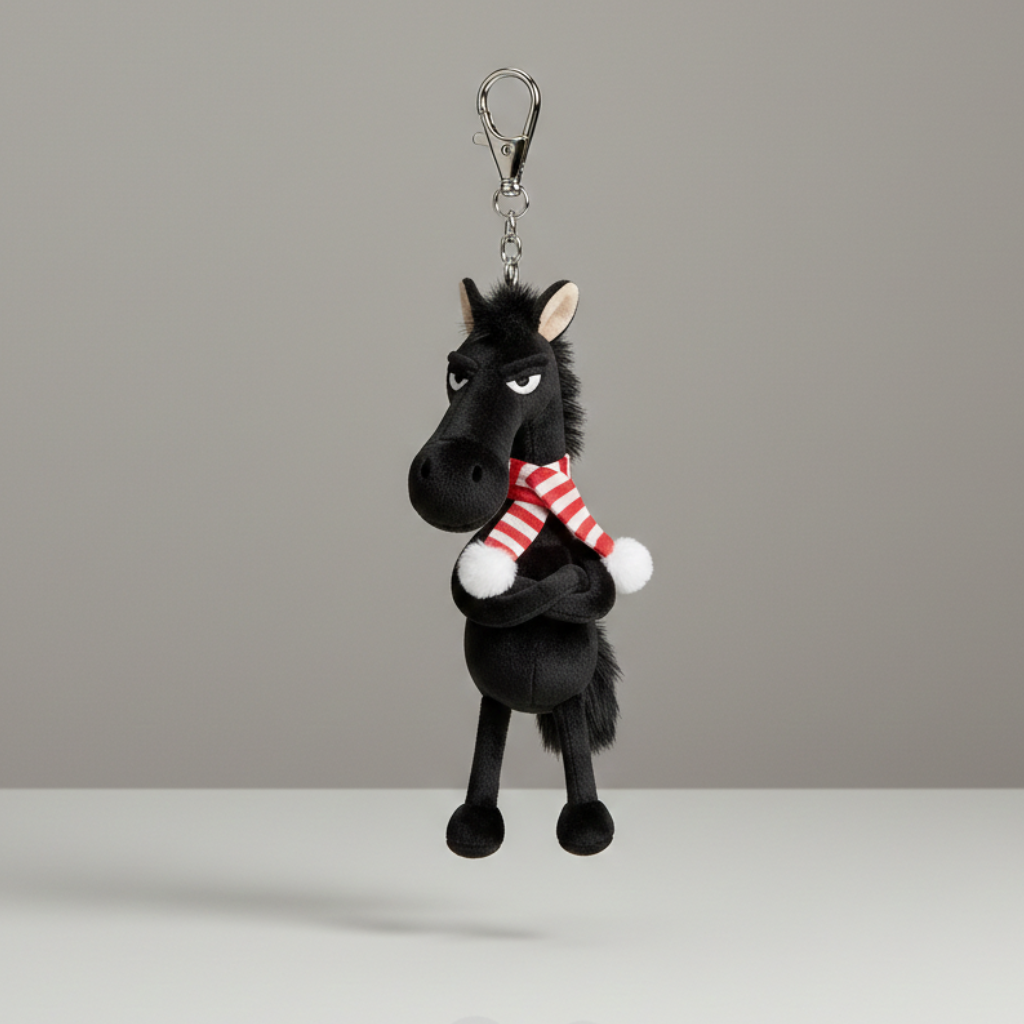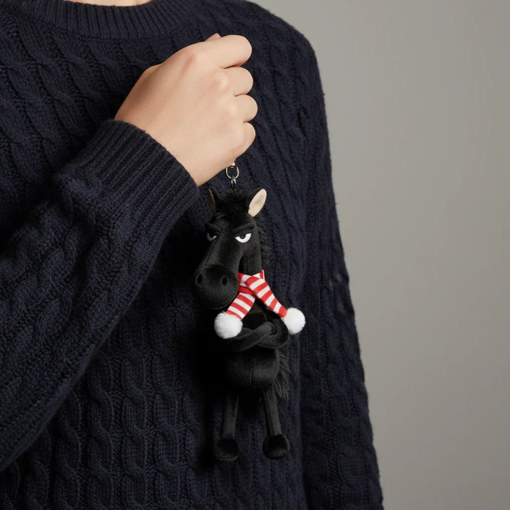 The "Cheeky Horse" Keychain is the perfect accessory for anyone who appreciates a hint of humour and personality. With its iconic "grumpy" expression and stylised design, this plush charm transforms any handbag or keyring into a conversation starter and object of interest.