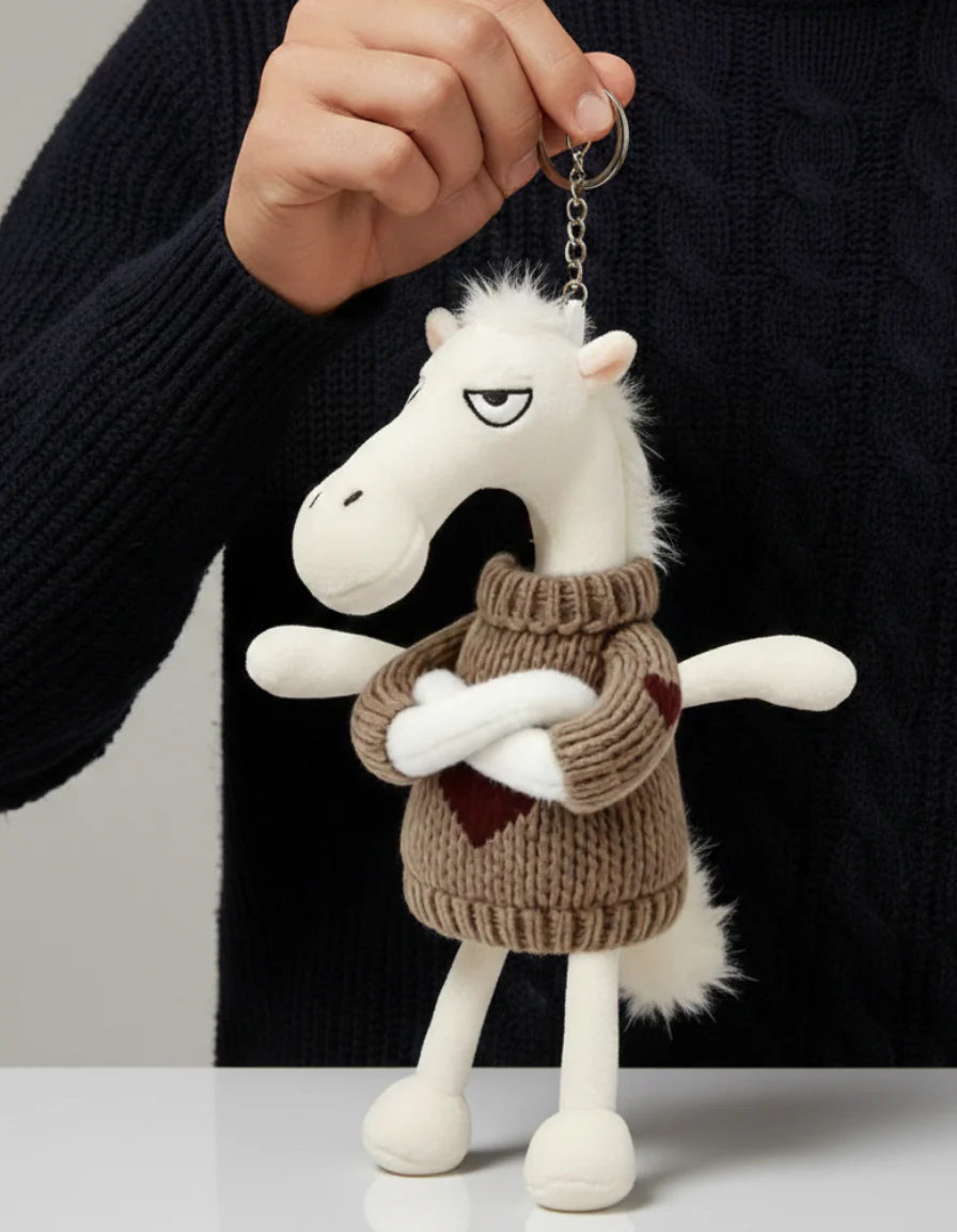 The "Cheeky Horse" Keychain is the perfect accessory for anyone who appreciates a hint of humour and personality. With its iconic "grumpy" expression and stylised design, this plush charm transforms any handbag or keyring into a conversation starter and object of interest.