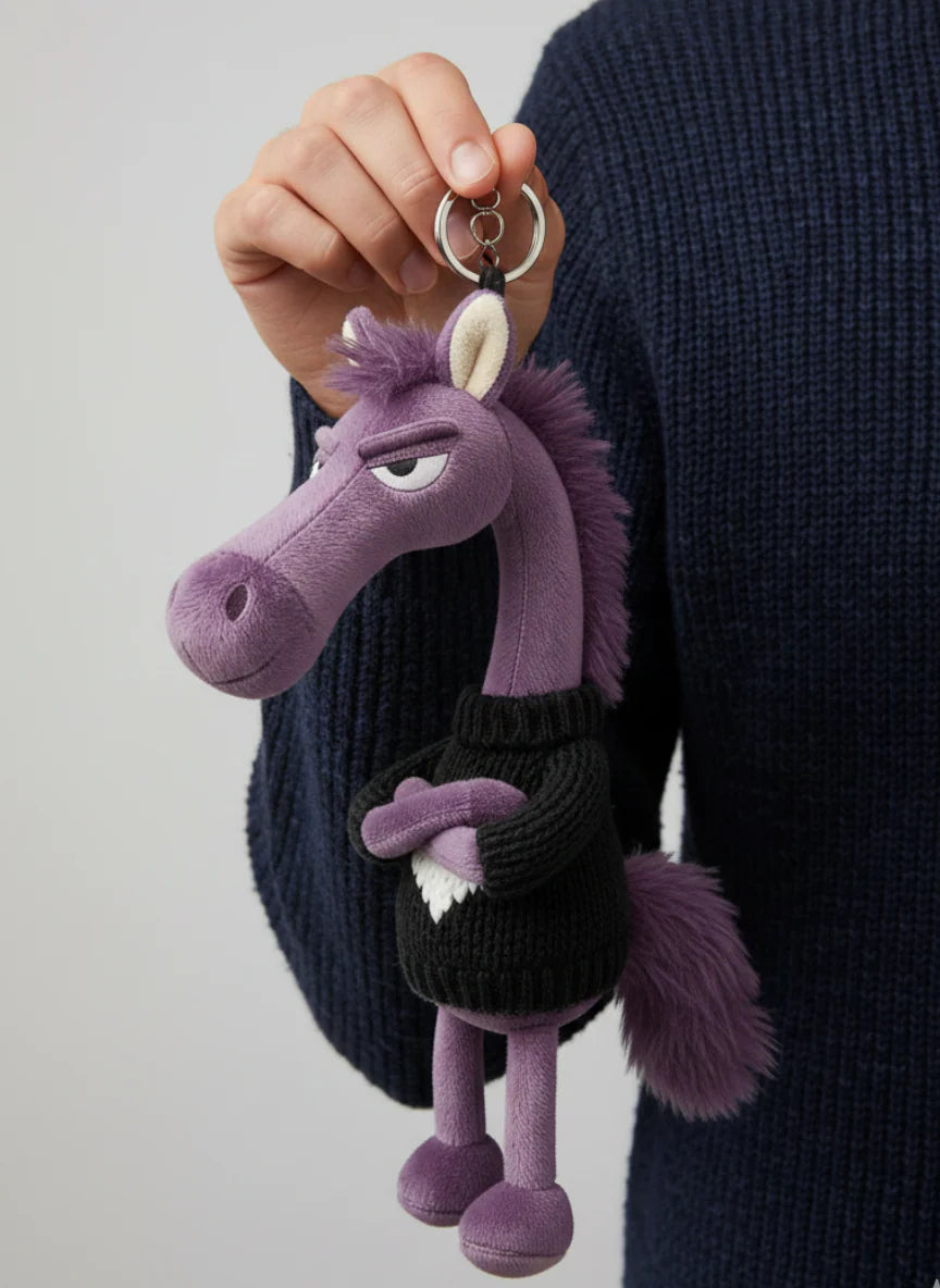 The "Cheeky Horse" Keychain is the perfect accessory for anyone who appreciates a hint of humour and personality. With its iconic "grumpy" expression and stylised design, this plush charm transforms any handbag or keyring into a conversation starter and object of interest.